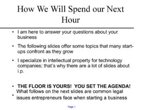 Here is my slide deck to a presentation I gave to start-up companies at the Workbar in Woburn, Massachusetts: